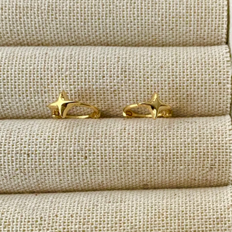 Dainty, 18 carat gold vermeil ear-hugging hoop earrings with elegant star detail.